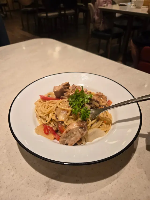 今日下晝,我同拍擋去咗屯門一間叫 Delifrance嘅法國餐廳歎下午茶。環境好chill,裝修有啲歐陸風,坐低就feel到有啲唔同。我哋叫咗兩個set。第一個下午茶係烤雞蘑菇惹菌汁意粉,啲意粉掛汁一流,雞肉又嫩又香,配埋法式龍蝦湯,鮮味爆燈,真係有驚喜。飲品就揀咗凍即磨咖啡,香濃得嚟唔會太苦,啱晒我口味。另一個係期間限定嘅韓國蠔泡菜卡邦尼意粉,辣辣地又唔會太刺激,泡菜同卡邦尼醬融合得幾好,幾有創意;超正,絕對值得推介。配菜係雜菜湯,清清地中和返個味,飲完都幾舒服。飲品就揀咗熱齋啡,簡單但夠暖胃。屯門呢間西餐廳真心正,價錢合理,服務又唔錯,下次可以再試吓佢哋其他菜式!…Read More