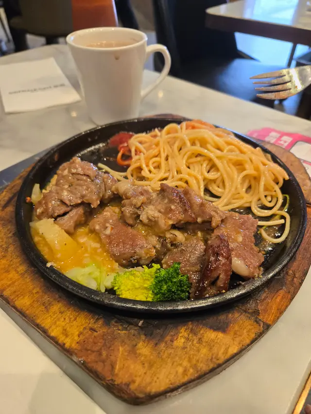 今日中午我哋去咗樂富一間叫「茜廊」嘅西餐廳食晏,環境幾舒服,坐得又唔逼。餐牌選擇多,啱晒我哋食肉獸。我哋叫咗幾款招牌菜:有鐵板特級肉眼意粉,啖啖肉香,意粉掛汁一流;板燒紐西蘭肉眼扒配薯菜同羅宋湯,扒煎得啱啱好,外脆內嫩,薯菜又唔會太油;仲有鮮茄燴牛脷意粉,牛脷炆得夠腍,茄汁酸甜開胃,配埋忌廉湯,幾正。最後梗係唔少得甜品啦,我哋叫咗香蕉船,雪糕加香蕉再淋朱古力醬,開心share ,啱啱好。成餐飯食得好滿足,服務又好;性價比高;下次再嚟食過。…Read More