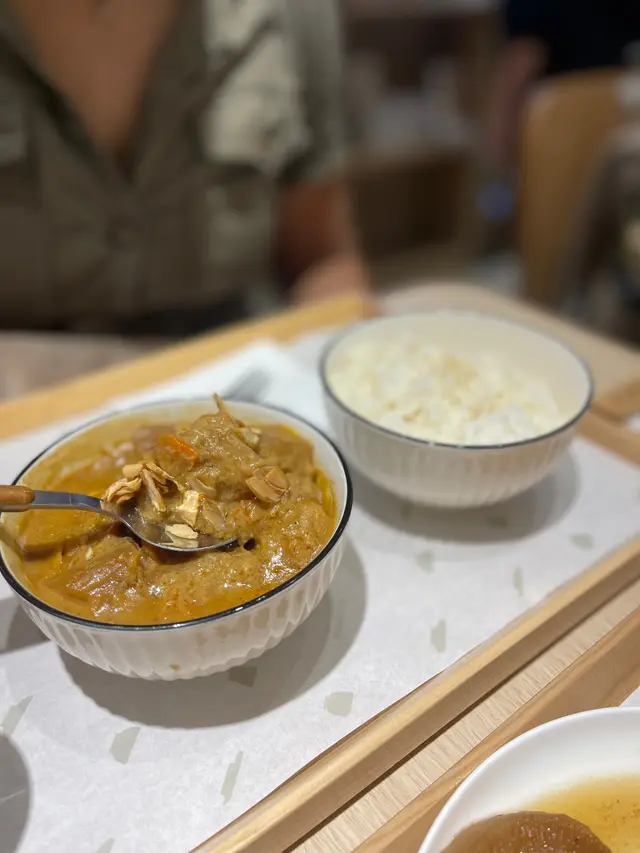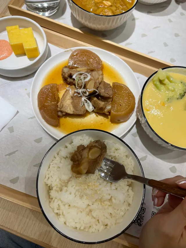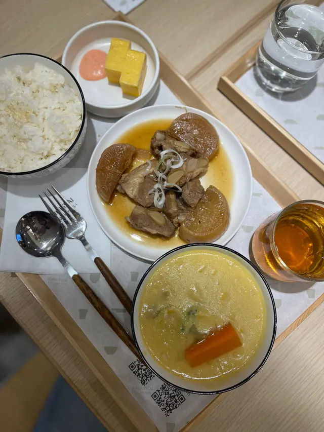 前排同朋友喺附近做完運動想食個快嘅就入咗呢間日本風格餐廳試吓。眼闊肚窄嘅我就揀咗和風定食,包一個湯、主菜、小菜、飯、同埋飲品。因為佢係一個快餐形式,所以一嗌就好快有嘢食。我揀咗北海道甜粟米雞肉豆乳濃湯,湯嘅味道冇地鐵站嗰間飯團個湯咁濃,但係味道都唔錯。主菜嗌咗豬軟骨,個肉炆得好腍,如果個汁濃啲會更好。我朋友唔食餐,嗌咗個豚肉玉子豆乳咖喱飯,好特別好似我個湯嘅味道,不過咖喱版,我超級鍾意😻超級推介呢個!我哋兩個最後忍唔住都買咗個甜品要咗濃厚焙茶布丁,個布丁配豆腐雪糕,豆腐味好夾焙茶濃郁嘅味道,唔錯唔錯!…Read More