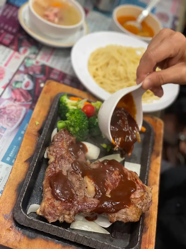 嗰日放咗工好攰,又唔想行得遠,就近近地入咗富華冰室食。當時大概7點已經差唔多坐滿人,食物應該有保證😆見到隔籬枱嗌咗個牛扒🥩,我又跟機,晚餐set $88 跟一個湯同意粉。牛扒唔錯,唔係太多根或者肥膏,平嘅價錢食到”Garden” 餐廳嘅質素👍🏻另外叫咗薯仔牛柳粒🥔、酸菜魚🐟同鹹魚肉餅🍪。薯仔牛柳粒意想不到既好味,好有鑊氣,完全唔似普通茶餐廳食到嘅質素。酸菜魚偏酸多過辣都非常唔錯,有菜同芽菜做配料,不過偏油。鹹魚肉餅還可以,味道冇乜特別。飲品跟餐嗌咗紅豆冰,好多紅豆🫘,鍾意食紅豆嘅你一定要叫。一間性價比高嘅快食餐廳,唔錯!…Read More