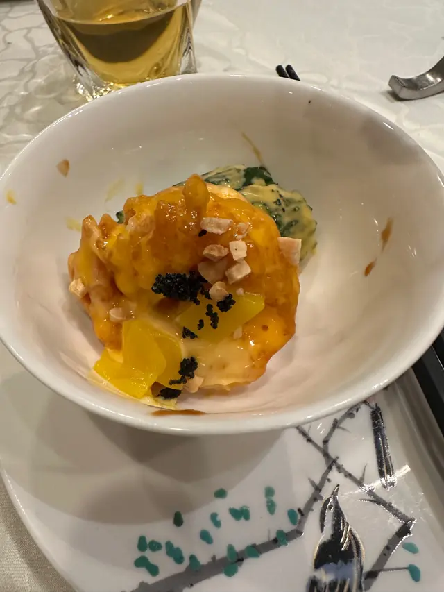 今晚的菜單都系傳統粵菜的精緻9道菜。 可惜撞正大廳有婚宴, 焗住要在旁邊的普通小廳落坐,錯失了大廳的經典氣派,感受不到預期氣氛。菜單從鴻運乳豬全體到岩鹽蒸雙老虎斑,每一道都是用料可以。黑魚子配香芒蝦球的組合新穎,吃落Q彈同爽口,味道豐富。XO醬帶子鑊氣十足,刺參湯與蠔皇鮑魚則彰顯宴席功底。 老虎斑蒸得剛剛好,燒雞不算太油,有驚喜。整體菜單體驗還可以,也有薑茶湯圓的溫潤收尾,可是因在小偏廳食,感覺這食物和服務的性價比有落差……Read More