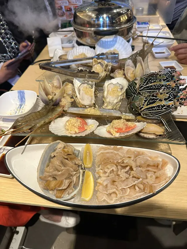 返到餐廳,我地一行五人,熱情的店員迎接我地入座。座位環境舒適,空調凍凍地,正好對抗今日嘅炎熱天氣。首先嚟緊就係捧住湯匙望住啲蒸氣嘅時刻。啲蒸氣彌漫出嚟,好香濃嘅海鮮味立即填滿鼻腔,令我肚餓指數急速上升。菜式上嚟,招牌海鮮蒸氣放題果然係豐富,啲海鮮新鮮彈牙,特別係象拔蚌刺身,入口即化,鮮味嘅層次頗有驚喜。象拔蚌刺身:份量十足,豐富鮮甜,刺身師傅切得好薄,入口即化,真係鮮味十足。肉蟹:個隻蟹好大隻,肉質鮮嫩,滋味濃郁,如果加上少許薑蔥,更顯鮮甜美味。生蠔:新鮮度一流,活蠔現開,肉質鮮美,可以配搭醋或辣椒醬,帶出不同風味。扇貝:粒粒飽滿,蒸得剛好熟透,保持了扇貝本身嘅鮮甜。大頭蝦:皮薄肉厚,質感彈牙,蒸氣蒸煮令蝦肉更加嫩滑,鮮甜味美。…查看更多