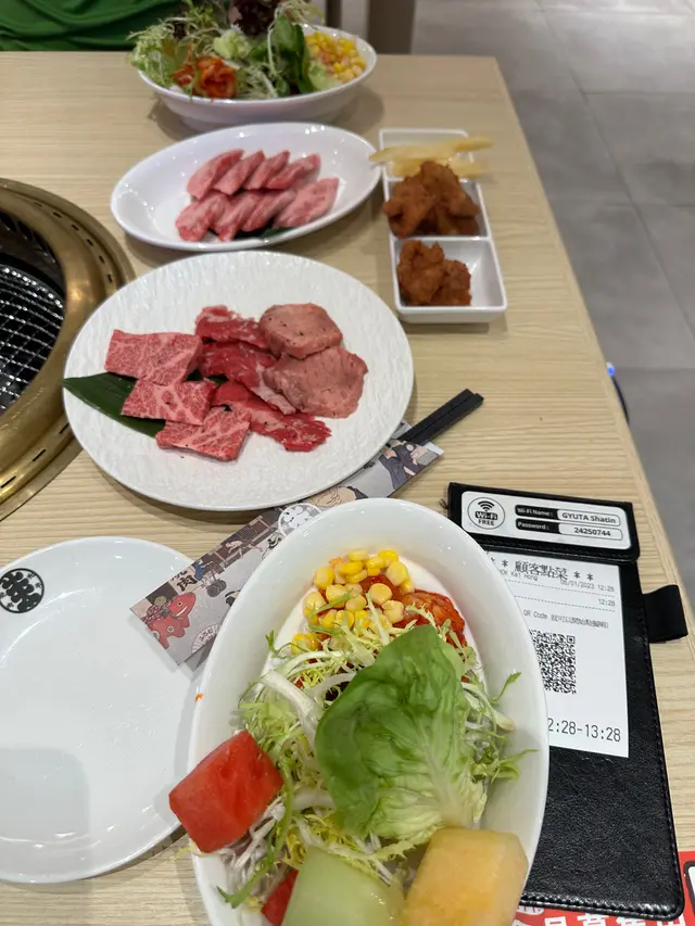 沙田中心新開餐廳牛太,中午有午市定量燒肉餐,限時60分鐘,係星期五中午就去試下,叫左一個199上級和牛,另一個同樣199和牛三味,每碟有8件,份量唔太多,但有任食bar,沙律生果炸雞薯條咖哩牛肉飯,所以實飽,上級牛肉好有油脂,肥美及好稔,另一個係牛舌2件橫膈肉3件牛肋肉3件,牛舌正常質素,橫膈肉就比較韌,牛肋肉好味,總結一試不妨。…Read More
