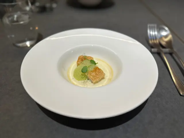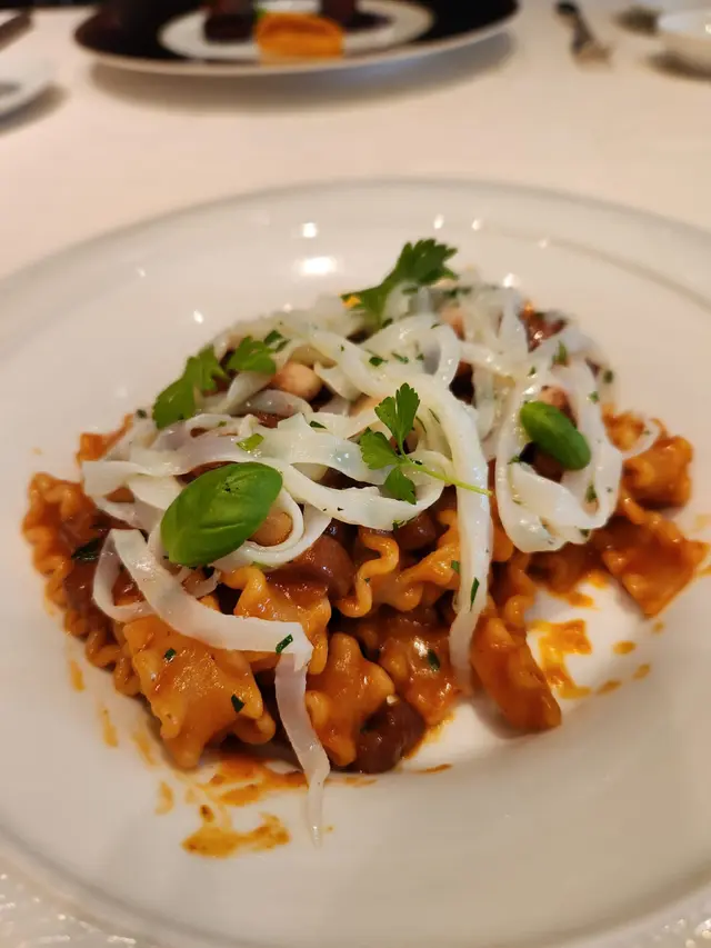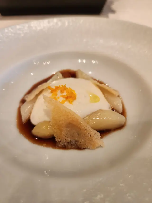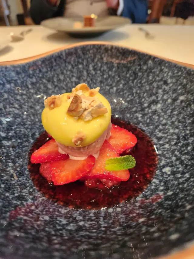 : This dessert is a delightful combination of sweet and savory flavors. The apples are sliced, coated in a light batter, and deep-fried until golden brown. The result is warm and tender apples with a crispy exterior. The dish is then served with a scoop of sea salt ice cream, which provides a unique and contrasting flavor. The saltiness of the ice cream balances out the sweetness of the fried apples, creating a harmonious blend of flavors. It's a unique and enjoyable dessert for those who appreciate the interplay of sweet and savory elements.The restaurant's design and decor have created an atmosphere that is both stylish and relaxing. It is evident that a lot of thought has been put into creating a space that is visually appealing and comfortable for guests. The lighting, music, and overall ambiance contribute to a memorable dining experience.One cannot overlook the staff's warm and welcoming nature, which adds an extra layer of enjoyment to the dining experience. Their friendly interactions and willingness to accommodate any requests make you feel like a valued guest. Their genuine passion for hospitality shines through in every interaction, creating a welcoming and enjoyable environment for guests.Overall, the combination of the restaurant's enchanting atmosphere and the super chill and nice staff make for a truly exceptional dining experience. It's evident that the restaurant takes great pride in providing a memorable and enjoyable time for their guests.