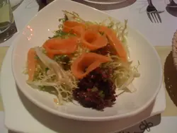 琴晚打算去simply life, 但一上到去, 真係好多人排隊呀..又餓又唔等. 立即落左下面little italy. 點知個receiption 姐姐同我地講, bar 位坐唔坐. 有位, 我地緊係一口答應啦~一入到去, 已經有香噴噴既bread 放係我地面前..我地叫左特式沙律 + 雞肉什椒通粉..2個portion 都好大...個沙律portion好大, 我係沙律狂, 都覺得satisfied ah~ 通常我都唔夠食架~!! 唔錯個意粉重好味..但以我地2個人既力量完全食唔晒..食左一半就give up 左 lu~另加一個 水果chocolate mose..好正呀!!! 係我食過最好味既mose, 細細個, 2個人share 岩岩好~~另外我想臢臢呢度既services, d 人好nice, 好helpful. 特別有個高高瘦瘦 既男仔, 明明唔係service bar 位, 我地成日叫佢加水, 又叫佢拎乜拎乜, 佢完成冇黑面, 重有求bit 應~ 真係唔錯唔錯~…查看更多