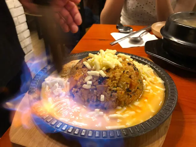 第一次食呢種飯,真係大開眼界呢間韓國餐廳係朋友介紹嘅因為經過尖沙咀,我話想食芝士嘢於是就去左食食完呢間,滿足感同罪惡感都爆晒燈🤩🤩個飯一上到黎其實係賣相好普通~就咁炒飯擺係鐵板度但係跟住真·韓國oppa就會走埋黎開始幫手倒d蛋漿上去之後就係好多好多好多芝士然之後Oppa就會用火槍起勢咁燒個飯!!!❤️❤️😭😭睇下個圖你就知現場係幾咁震撼!因為我真係未見過米飯拉絲🤯每一粒米都被芝士包裹!個口感除左正我唔知講乜好除左飯,我地仲叫左個韓國蒸餃子,每個餃子都拳頭咁大,不過我就略嫌佢乾左小小個牛肋骨湯都唔錯~都算鮮甜總而言之,呢間係芝士控一定唔可以錯過嘅餐廳其他野食,就自己決定叫唔叫啦…Read More