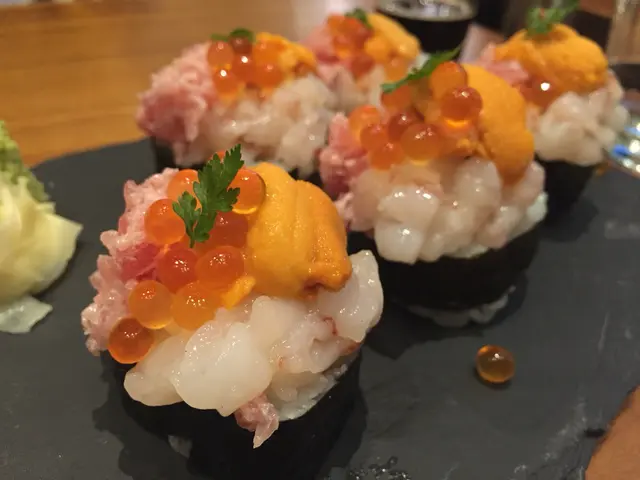 在等位時,間中會傳來非常香的味道,應該是在做拉麵的湯汁吧,完全是在增加我的食慾。雖然這店是主打拉麵,但倒不太合我口味,我覺得味道太重,不是我喜歡的。菜單上美美的圖片實在太吸引,所以除了拉麵外,我們忍不住點了帝王卷,帝王卷是一件有海膽、魚子、吞拿魚腩,甜蝦的壽司。幾種本身都好鮮甜的刺身堆在一起,一口咬下去,感覺好複雜,但又好豐富,沒有誰搶了誰的味道,會把他們的味道都一一吃出來的。…Read More