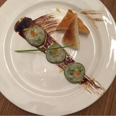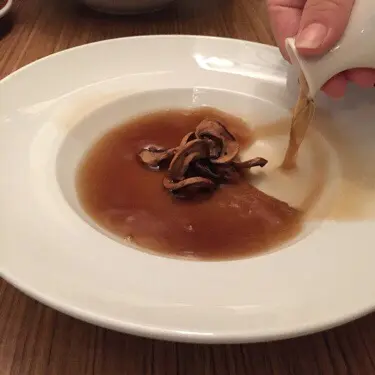 朋友經常到工廈尋寶,今晚她約了我到觀塘。地鐵站出後行一段路,很快就到,很容易找。餐廳不是很大,但枱與枱之間有足夠距離,可以放心聊天談情說八卦,哈哈。冰柚子果茶。賣相好吸引,味道酸酸甜甜,好開胃。最後我把水果都吃了。推介。燒原隻魷魚釀墨魚汁意大利飯。魷魚煮得剛好,不"un",裡面釀有紫菜包住墨汁意大利飯。魷魚切成一件件,食得好方便。醬汁都調得很好味道。炸蝦肉釀雞翼珍寶珠。上枱我終於知道為什麼叫珍寶珠,哈哈。咬開是雞翼包住蝦肉,炸粉不是很厚,沒有很油。把雞翼弄成波波形狀,特別可愛。有兩款醬可以選擇,一種感覺是蔥油味道的醬,另一種是我個人比較喜歡的蕃茄辣醬。60度慢煮手撕雞漢堡。看到帶蛋汁的煎蛋我就很高興,哈哈。雞肉用了現在很流行的慢煮方式,所以還能保持肉汁,而且肉質很嫩。麵包軟熟,還有其他蔬菜,饀料豐富,配上大份量的炸薯格。值得一試。我覺得味道和服務都不錯,很花心思。希望工廈裡的餐廳繼續用心,令更多人會願意嘗試支持。…Read More