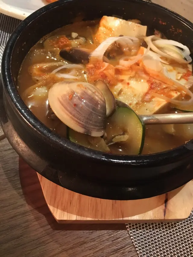 自從利東街改頭換面後,我和姊妹們都經常到這邊聚會,人不是很多,不會太擠擁,而餐廳就越開越多,很多選擇。路過這間看似是西餐廳的門口,店員站在外邊介紹,是新開的韓國餐廳,裝潢設計都很不錯,座位很寬敞,感覺挺好聊天,我們就試試。迷你豬肉紫菜飯卷。對於愛吃澱粉質的我,韓式飯卷當然是我的選擇。飯卷味道不錯,芝麻味很香,加上拌菜蘿蔔酸酸辣辣,相當開胃,份量不大,絕對適合做前菜。泡菜海鮮煎餅。有泡菜、蝦、魷魚、辣椒等材料,煎得薄薄,小小辣,不會很膩很油。傳統豆腐海鮮大燴。我理解為海鮮大醬湯,有蝦、帶子、魷魚、蜆、豆腐、青瓜等。韓式湯通常對我來說味道都稍微鹹一點,建議另加白飯一起吃,味道剛好。海鮮炒韓國粉絲。喜歡炒粉絲,煙煙韌韌,加上香香的麻油味,不會太鹹,配料很足。甜品是自家製雲呢嗱雪糕拌甜合桃和黑白芝麻脆片。雪糕雲呢嗱味很香濃,不會很甜,合桃新鮮脆口,芝麻片都好味,贊。整體食物、環境和服務不錯,份量比一般韓國餐廳較少,但如果跟三五知己吃飯聊天,來這裡靜靜地,又可以乘機點多幾道菜,是不錯的選擇。…Read More
