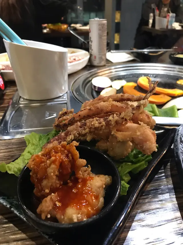 旺角呢間running 燒位置方便,我地一共三個人, 6點半左右去,吾洗等位即刻有得食  入面去人都吾算太多, 不過去到8點就爆左場,間餐廳的裝修同環境十分韓式,餐廳的樓底比較高同埋每張桌之間吾會太逼, 所以感覺好舒服.一般韓燒都聞到自己由頭髮去到對鞋都會有一陣燒味,不過依間啲通風真系做得好好, 我連燒烤的煙都見吾到 ,走個時身上的韓燒味都聞吾到👍見到隔離抬的大蝦、生蠔、帶子、扇貝,心心眼😍雖然我不太懂怎樣燒同,但冇男友的情況下去服待呢兩位小姐,以上海鮮好新鮮,燒生蠔扇貝其實好驚,聽到裂売的聲音,不過為左美食就”來”吧!燒生蠔也很不錯,蠔味濃又冇燒乾水,邊寫邊流口水🤤生蝦彈牙鮮甜吖茄子、青瓜、杏鮑菇燒完搽上一點韓國醬汁,非常清爽又惹味牛仔粒、雞翼、雞扒⋯⋯非常入味食得我們很飽很飽多春魚⋯⋯很喜歡的一項,不過以我的高超技術將魚炒成一碟🙈⋯⋯服務員看到也忍不住問要不要來多一份,我幫你加油就不會這樣,原來忘了加-》油豬皮是韓燒不能缺的一部份,燒的過好似會爆開咁,當豬皮漸漸抽乾收縮,口感爽脆帶點煙靱,不能錯過的再飲個阿珠媽靚湯,即時覺得下火了五花腩、牛肋骨、豬頸肉、雞腎同樣醃得入味,即使經過燒烤不用點醬汁,都已經好好味,仲要好juicy下這餐廳的食物質素環境服務比想像中好,今天食得很飽,再來食返夠本…Read More