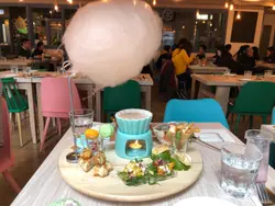 我地揀左紫米露鍋底,好多紫米,超香三色粉圓好煙韌,記得要喺個鍋浸耐啲先會夠熱個窩鍋浸左落啲紫米露再食,變得軟熟更好食我地再試埋舊雲(棉花糖)同macaron 波板糖造型好可愛
