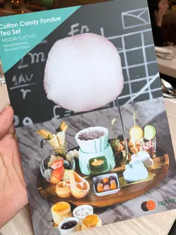 有好香既斑蘭味!飲完成個人暖笠笠!等左陣Tea set就黎啦!!!團粉紅色綿花糖好大舊好搶鏡,望住忍唔住: 嘩~好可愛呀