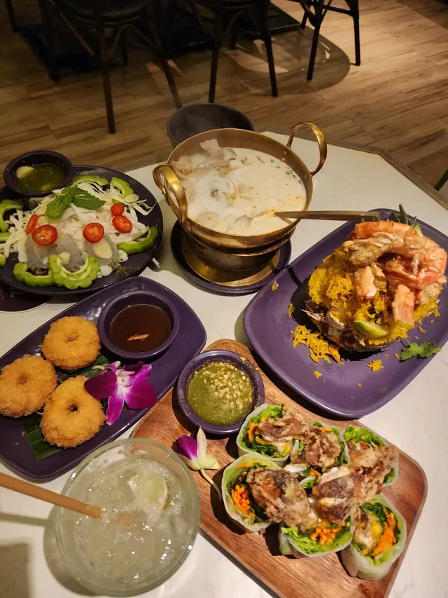 唔使去泰國都有泰國風味一坐低會奉上蝦餅一份,需要收15蚊 ,有少少辣但係超級可口。👍🏻沙田的泰國風味,地方寬敞坐得好舒服👍🏻泰式椰子雞湯$108 Tom Kha Gai 食過返唔到轉頭,成日心心念念想去食椰子雞湯 。 實在太好味喇。 充滿南薑同埋檸檬葉嘅香味,酸酸甜甜,好重椰奶,加上少少辣十分開胃。送飯一流👍🏻 鷄好滑~~~~菠蘿肉鬆海鮮炒飯 $128仲有佢個菠蘿炒飯好有誠意有肉鬆 提子 果仁 一隻大蝦 超多菠蘿🍍 蝦餅三件$58炸得超脆,香口蝦味,正。 芒果軟殼蟹米紙卷$118芒果份量不多但係勝在夠甜。配上炸得剛好的 軟殼蟹 ,簡直絕配👍🏻泰式生蝦 $138食泰國嘢必點嘅泰國生蝦,但係呢個醬有香菜, 蒜頭, 辣椒 。辣,係好辣👍🏻 辣得好過癮,一隻接住一隻根本食上癮。食吾停。…Read More