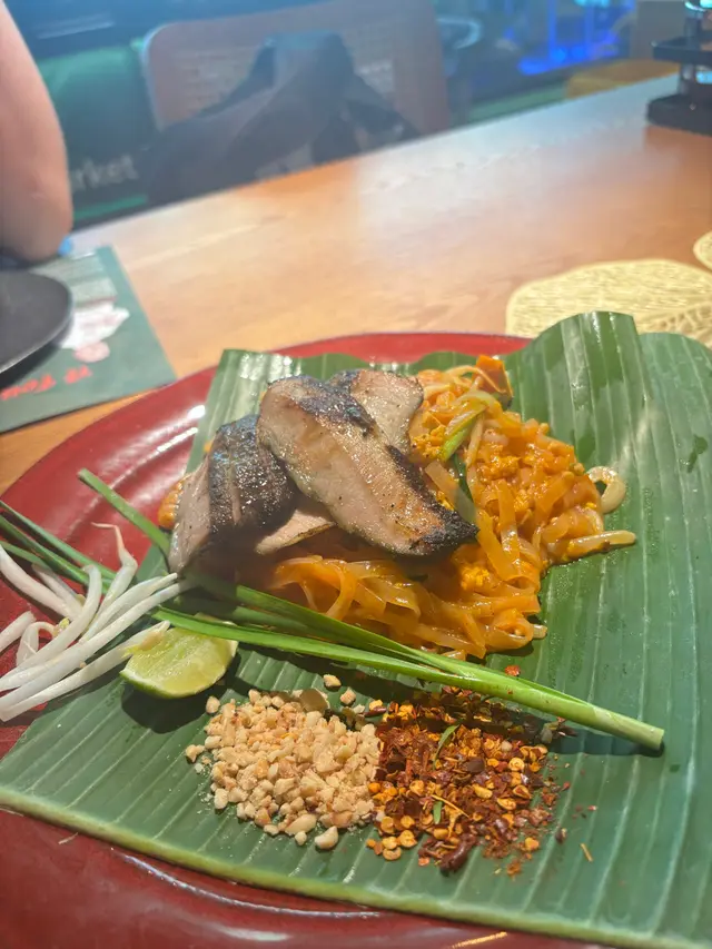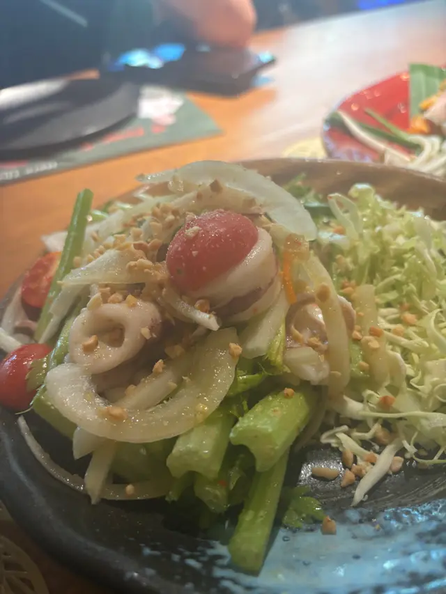 老公去新城市行街,經過一間泰國菜,見都幾多人,同埋好大個大廚poster,決定試一試!泰式海南雞拼燒雞飯:一雞兩食:燒雞同海南雞,我哋都一致比較鍾意燒雞,因為做到皮脆肉滑既質感,而個海南雞皮比例重d。個油飯似泰國本地個種,無咁油,同著重係香料味。泰式豬頸肉炒金邊粉:呢度既金邊粉望梅子既酸味出d,個粉軟硬適中,豬頸肉如果可以重d焦脆感就好。魷魚沙律🥗係一道以洋蔥+西芹+番茄仔+魷魚為望既泰式沙律,魷魚彈牙菜都新鮮。牛柳肉串燒:呢個絕對係mvp!肉質軟林,外面層衣好似叉燒焦脆,咬落有肉香,幾有驚喜。龍眼冰:幾大杯,同埋都多龍眼肉。Overall食物80-90係新城市,味道幾還原到泰國風味🇹🇭…Read More