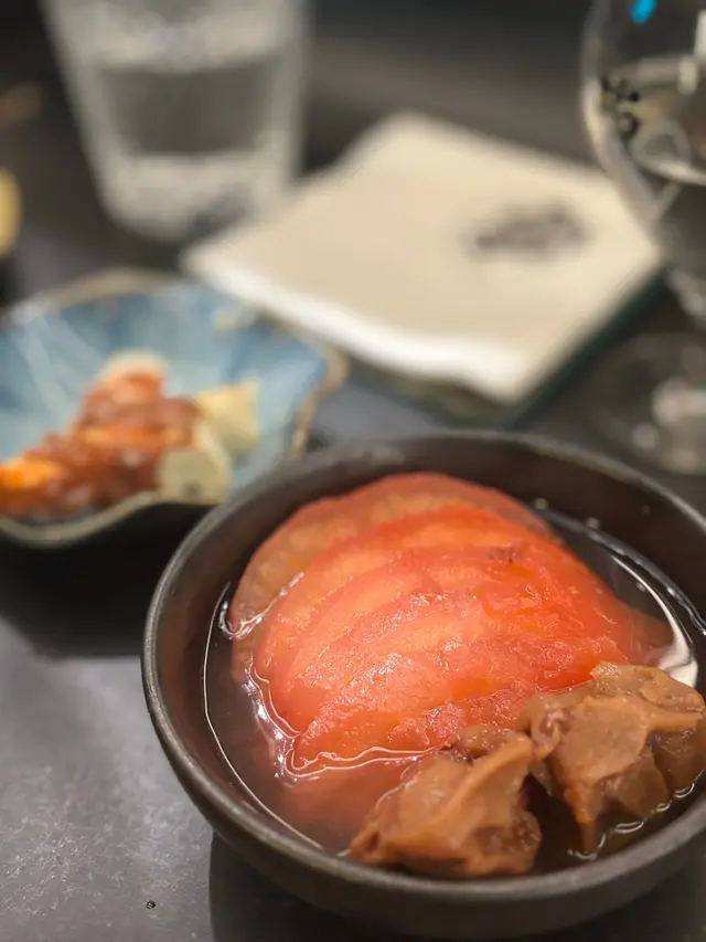 同朋友見兩草好多人,想話搵個有酒+串燒既地方chill下放鬆,見到呢到有入好似少見「十四代」既酒水,本身個人比較好醇酒既酒,因為比較不霸道。盤城壽+二兔愛山純米:我地兩個都選了醇酒,但個人鐘情用咗愛山米種釀製既二兔純米,有突出既花果香,入口甘甜細滑,醇酒比較輕盈,比較岩女士飲用,之前有諗過上網買一支,呢度買一杯可以小試咗先,成件事好貼心!梅子番茄🍅:番茄已經被梅汁浸到入味,番茄既甜味更多好地呈現。酒盜芝士:呢個真係日式居酒屋必備,濃郁奶香既芝士,配上醃既明太子魷魚,配酒甘香有層次,但會比較咸少少。手羽:欣賞師傅拆開攤開雞翼燒既手法,雞肉細滑皮有炭香既淡淡鹽味,非常出色!白鱔:鱔肉燒得焦脆有彈性,不失魚油香。夢王蛋飯:呢道仲有用咗日本高質既無菌蛋「夢王」整既蛋飯,蛋汁味特別厚重濃郁。菜肉瓜:師傅能夠好好咁將蔬菜本身自然既甜味呈現+有水份,調味恰到好處,其中菜肉瓜灑上胡椒鹽,成件事好夾同特別。豚肉生菜卷,呢個出面比較少見,生菜中和肉既油膩,非常平衡!幾中意好 chill既氣氛,見Menu仲有提燈,下次想同朋友再encore…Read More