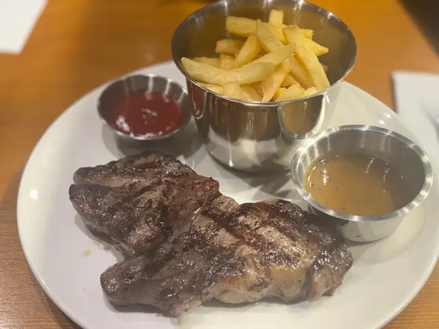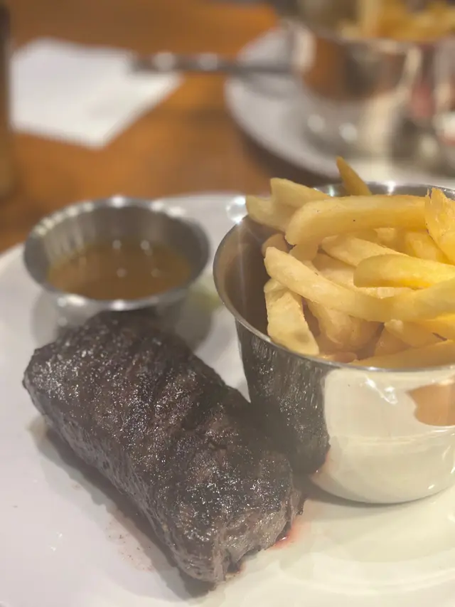 話說朋友一直好想食有free flow薯條既牛扒set,但好多地方一個set都$300-500。今日經過見呢個$200左右有野飲+任食薯條🍟,決定坐低。封門柳7成:肉質相對比較軟林,汁水比較多。最重要呢塊外層烤得焦香,入面肉既油脂香十足。肋眼肉扒7成:肉眼扒個人覺得肉質相對封門柳有彈性,中間有痴住一條切得開既軟筋,幾有彈性。薯條🍟係炸得鬆脆既粗身薯條,飽足感十足。因為見有任食,我哋忍唔住再encore咗一輪。兩款牛肉都無得人驚既雪櫃肉味,呢個價錢真係無得輸了。蒜蓉黑椒汁可以濃厚多少少就更好。…Read More