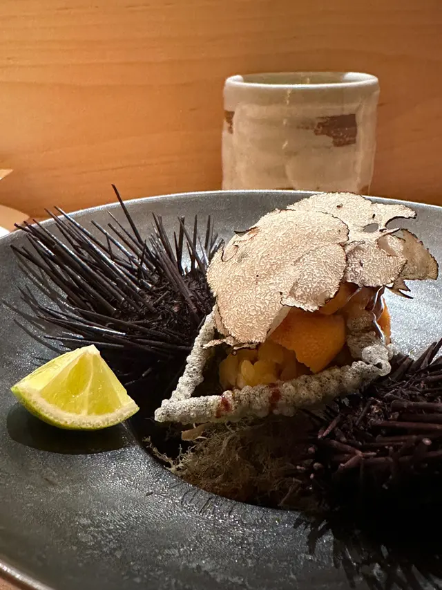 餐廳的環境、服務、衛生情況亦表現良好。職員主動了解食客有沒有食物敏感或不想吃到的食材,除了基本的菜式介紹、食用方式建議,同時亦會說明食材跟已點的清酒配合與否等等。廚師亦會關注食客的用餐情況,並適時作出介紹或補充資料等等。食物方面,食材新鮮;當中需要調味的部分亦很出色。唯部分菜式的表現未屬驚艷,而價錢上略貴,性價比方面稍為遜色。推薦菜式:1)前菜 - 佐賀海苔配北海道馬糞海膽黑松露黑松露香氣撲鼻,配搭得宜2)甜品 - 薑味雪糕薑味恰到好處,香而清新,完美作結…查看更多