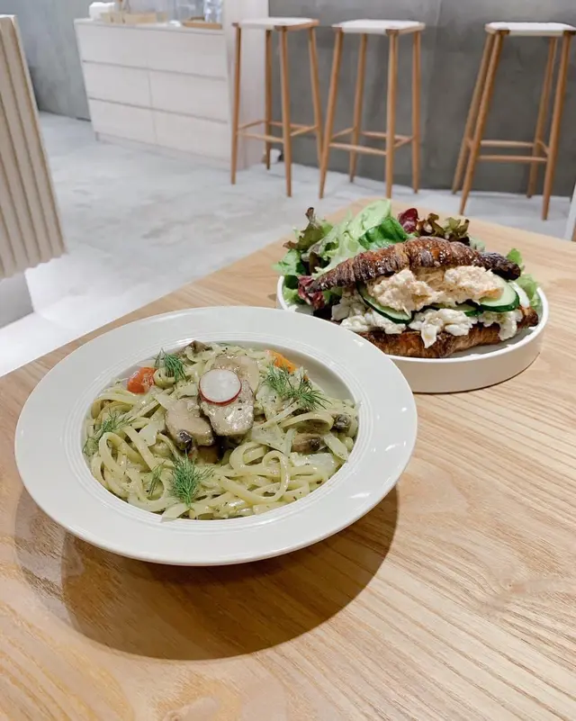 以布為主題的𝗰𝗮𝗳𝗲可以說是在深水埗基隆街中的「另類布行」 店內充分地利用布料作裝飾以布樣板設計的菜單就連店名的英文發音亦是布的諧音 ▹ 𝗟𝗮𝘁𝘁𝗲▹ 𝗖𝗼𝗹𝗱 𝗕𝗿𝗲𝘄▹ 羅勒青醬啡菇扁意粉▹ 蟹肉蛋白沙律牛角包 𝗟𝗮𝘁𝘁𝗲的拉花夠特別但是奶味太重蓋過了啡的味道𝗖𝗼𝗹𝗱 𝗕𝗿𝗲𝘄 感覺是偏𝗡𝘂𝘁𝘁𝘆 的味道 羅勒青醬啡菇扁意粉帶有淡淡的香草味味道不是太濃蟹肉蛋白沙律牛角包有滿滿的蟹肉配以鬆脆外包再加上其他食材,口感豐富…Read More