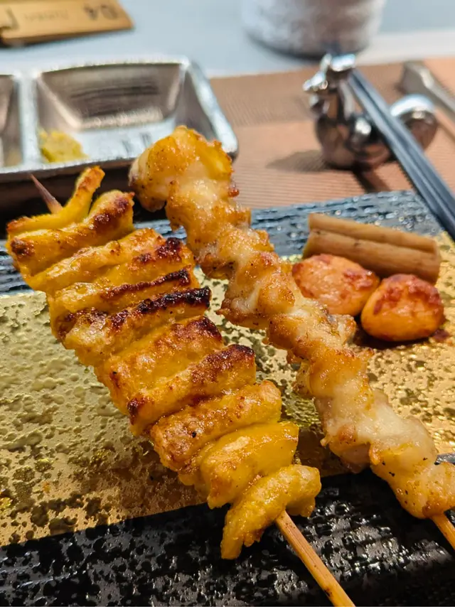 專注用雞嘅唔同部位製作串燒,仲結合咗酒吧元素,環境相當闊落,燈光柔和,氣氛舒適,無論同朋友聚會定係約會都啱晒。餐廳主打係慢工出細貨,將雞嘅美味發揮到極致,值得一試。慢煮松露雞卷肉質鮮嫩,松露嘅香氣滲透到每一口,真係回味無窮。雞肝茶碗蒸成個碗底鋪滿咗滑溜濃郁嘅雞肝,配埋嫩滑嘅蒸蛋,口感豐富。稀有部位串燒雞軟骨燒得香脆,咬落仲有啲微微嘅煙燻香氣;雞腎內裏滑嫩,味道濃郁,帶少少獨特嘅鮮甜;至於雞腳筋就彈牙爽口,咬落嚟特別有嚼勁,完全係口感控嘅天堂。嚴選部位串燒雞翼皮脆肉嫩,啖啖都充滿肉汁;大葱雞肉串燒結合咗大葱嘅微甜同雞肉嘅鮮香,兩者味道互相平衡,唔會過於油膩;而雞皮就係燒鳥經典,外皮燒到微焦香脆,油脂豐富但又唔會太膩,香氣十足,非常滿足。素菜串燒秋葵串燒同青椒串燒煙燻香氣配上蔬菜嘅自然甜味,令人一試愛上。慢煮三黃雞白湯湯底超級濃郁香甜,充滿雞嘅鮮味,飲落勁暖胃!!!雞蛋蓋飯用上滑溜嘅溫泉蛋鋪喺飯上,再加上自家製醬汁,簡單但好出色。香蕉雪糕配抹茶蛋糕雪糕香甜細膩,配埋濃郁嘅抹茶味蛋糕作結尾,完美劃上句號。整體嚟講,鳥駅真係一間好值得再訪嘅燒鳥店,無論係食物質素定係用餐氣氛都一流!…Read More
