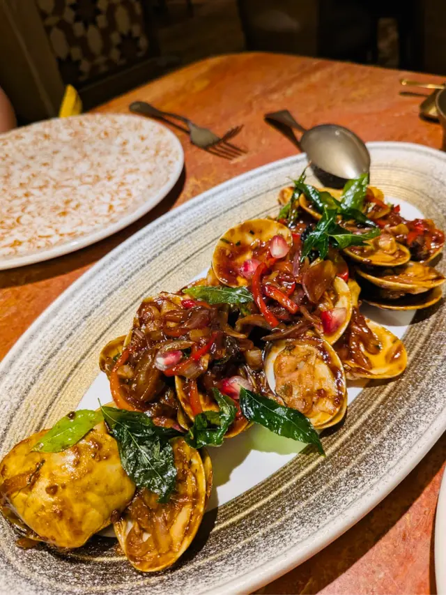 環境氛圍好舒適,有啲摩登又唔失傳統元素,燈光暖暖地,非常適合同朋友聚餐或者約會。聽聞廚師Kumar當年喺巴基斯坦 Pearl Continental 做野向Zainab阿姨學識左秘密配方,對巴基斯坦風味與香料烹調技術深受啟發。馬拉炒蜆辣味帶啲孜然香,入口好惹味但唔會太刺激,完全係開胃頭盤之選。炭火免治羊肉串,羊肉冇膻味,炭燒香味十足,外層微脆,配埋啲酸酸甜甜嘅醬汁,簡直一流。奶油咖喱大蝦真係值得一讚,咖喱汁好濃郁又滑,奶油味同香料平衡得好好,仲帶啲微辣,大蝦彈牙又入味。配埋松露芝士饢餅,真係完美組合,嗰陣松露香味夾埋咖喱,食到停唔到口!Mango Lassi甜度岩岩好,仲有少少酸味,飲落好爽口又解辣。甜品揀咗Anjeer Phirni,呢個係用無花果同米煮成嘅布甸,口感滑溜,甜味唔膩,仲有啲果仁碎。上面仲有一球濃郁嘅Vanila雪糕,為餐飯畫上完美句號。…Read More