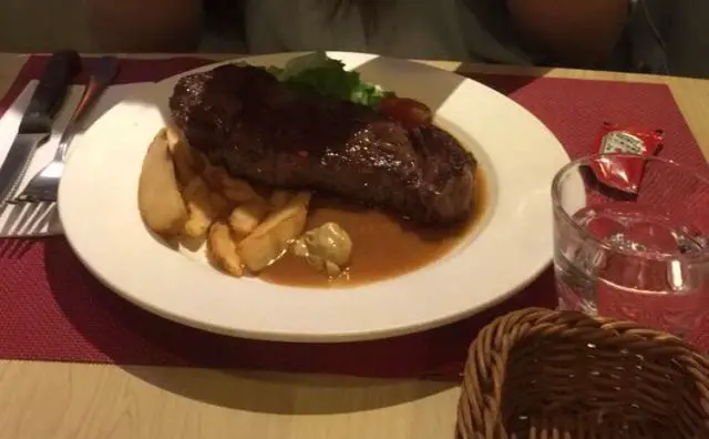 心思思咗好耐揀西冷定肉眼好🤤 最後決定同朋友各嗌一份一齊食 都跟咗set 有湯或者沙律揀 我就揀咗沙律 🥗等自己食扒嘅時候冇咁罪惡感!🤣 沙律個醬係橙橙地 應該係千島醬 好食!扒方面都幾好水準 🍗肉眼就薄啲淋啲 西冷就肉味濃啲同厚啲🤣👍🏻 我揀咗意粉 連埋個汁好好食👍🏻👍🏻👍🏻跟餐嘅蜜桃汁就唔係幾好飲😞P.s 因為係開放廚房 所以都幾大油煙味 不過勝在可以坐耐小小 服務都好好 值得encore!🤤🤤…Read More