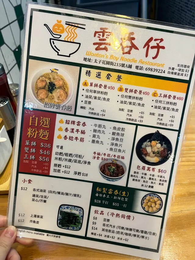 放學後一個人揾lunch食~ 見到呢間雲吞麵就諗住行入去食啲冇咁heavy嘅野!Main Menu有一頁~基本款都有齊~😌牆上面仲有其他特別款 但應該都係長註款!最吸引到我就係佢個麻辣千層峰😍😍😍但我一個食唔到咁多就冇叫了!下次再試~但總括黎講價錢好合理~我叫左個自選三拼~ 可以試多啲😆🤍雲吞牛筋豬肉丸米粉 $56雲吞同豬肉丸每樣三粒!~😍牛筋就有一條碗咁長的🤣米粉份量偏少~ 啱哂怕肥嘅女仔們~男仔食可能就要加底了餐廳名令我好期待佢地嘅雲吞😆雲吞入面有完整蝦肉!材料十足雲吞皮夠薄又夠滑~ 唔錯唔錯~豬肉丸口感彈牙!牛筋都好夠諗~😋🤍凍豆漿 +$5加左杯凍豆漿我飲開無糖 但呢杯有糖都唔會太甜~~整體評分:🤍🤍🤍係有好多選擇嘅雲吞麵鋪😄餸嘅份量都好足~ 黎附近都可以一試!…Read More