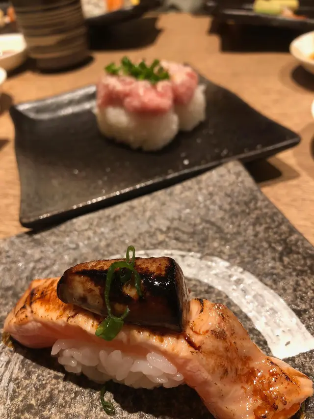 同同事們食個新年飯, 大家決定到峰壽司餐牌上有午餐set及聖誕special, 但聖誕special在這沒有; 有部份餐牌食物在這分店都沒有(比較失望, 還好不是為新菜式而來, 否則會敗興而回)由於午餐不太合心水(因為大量三文魚), 所以叫了幾個單點, 包括一客嚴選貝盛(4粒), 金目鯛壽司, 火炙葱粒吞拿魚壽司及鵝肝厚切三文魚壽司, 另外同同事share兩客炸物.... (不知何解相片自動被「瞓橫」了...) 食物水準是一貫峰壽司水準, 驚喜欠奉但起碼不會有驚嚇...炸物就不多講, 不是太突出...壽司海鮮ok, 但飯比較削, 不夠黏度, 所以差不多所有壽司都散開...呢一點有人可能不介意, 但我就不喜歡另外, 他們六人座位坐的比較擠擁, 所以要非常小心避免讓由食物輸送帶「飛」過來的食物打到頭...…查看更多