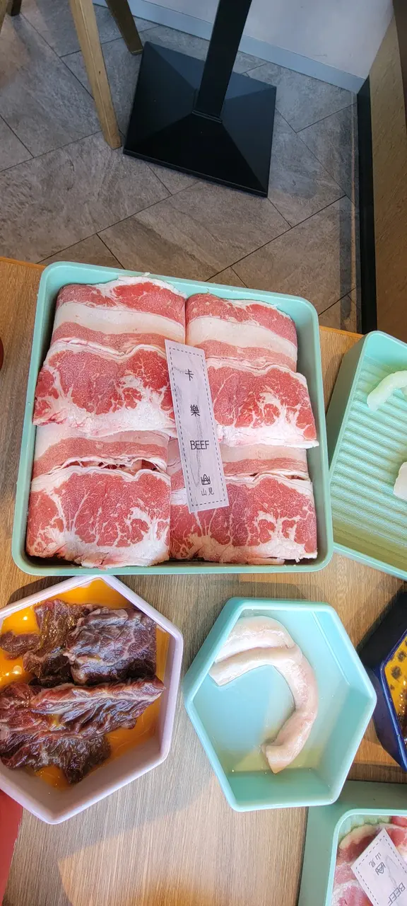 一坐低就發現原來呢到係QR Code落單.好方便 食乜就自己點 作為食肉獸既我當然點肉啦.佢地牛肉都幾多選擇 牛爽腩食落去好嫩滑.卡樂beef個油脂分布都幾均勻.肩里肌肉個牛肉味就濃d . 呢到d牛肉都叫做唔錯 .我平時就唔太食得海鮮.所以就算佢有好多海鮮選擇都冇揀到