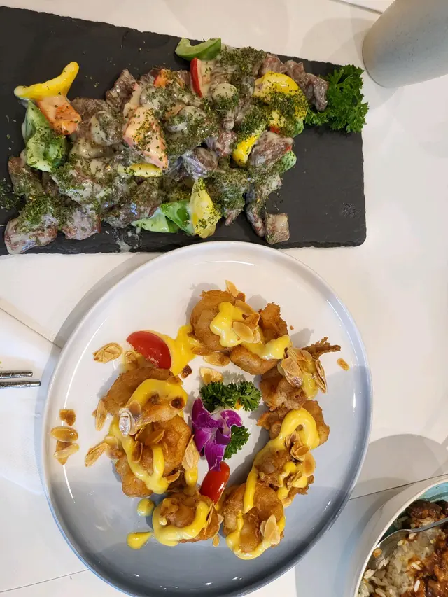 Had heard about the cafe from another friend and decided to go when my baby got old enough. She is 9 months and they had a separate cushioned area for under 2 year old children. she got used to it straight away and my husband and i enjoyed our food at the table right next to the play area. we ordered wasabi beef, deep fried prawn with lime sauce, and taiwanese lu rou fan. Food was OK but too pricy and no set meal. Beef wasabi sauce was interesting but the beef quality was not worth the price, especially as the sauce covered up all the taste. Acoustics a bit too loud but that's kids - maybe different flooring or ceiling material could help. overall good experience for one time and enjoyed the walk at cruise terminal sky garden, but too over priced to be going frequently.…Read More