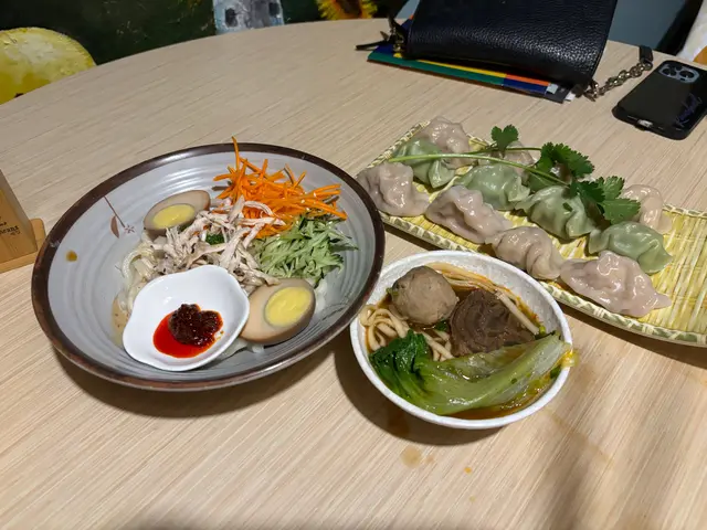 上網見到呢間咁多好評,就約咗兩個女仔一齊試吓。我早咗少少到,周圍望吓牆身的人工繪畫,已經覺得呢間店好有心思。我們點了豐盛台灣牛肉湯麵、紅油三彩水餃、雞絲芝麻涼麵和好多人推介嘅芋泥奶凍吐司。牛肉湯麵有牛腱、花枝丸、貢丸和滷水蛋。湯底濃郁,但又唔會太鹹。牛腱真係要讚一讚,入味之餘,煮得夠腍。水餃就普通啲,但配嘅紅油醬汁都唔錯。雞絲芝麻涼麵配芝麻醬,食到停唔到口。芋泥奶凍吐司都幾特別,平時冇乜地方可以試,冇諗過呢個配搭都幾好食。整體嚟講,呢間餐廳性價比高,三個女仔食,平均都係$92。另外,提提大家,如果冇支付寶,記得帶現金,餐廳只收支付寶和現金。…Read More