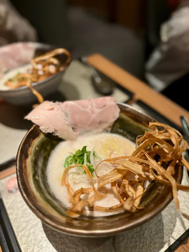 中上環有好幾間拉麵店,朋友介紹呢間雞白湯拉麵,所以就過咗嚟食晚餐。平日晚上唔算好多人,我們Walk in都有位。菜單選擇唔多,我們二人都選了最多人推介的雞白湯拉麵($148)。首先,拉麵賣相吸引,肉片掛在碗邊再加炸牛蒡,打卡一流。先飲一啖湯,湯底濃郁,好creamy。炸牛蒡亦炸得剛剛好,乾身又脆。豚肉片和雞肉片都煮得好軟腍,不過味道就淡啲。整體嚟講,價錢略略偏貴,本身不算是拉麵愛好者,試過一次就夠。…Read More