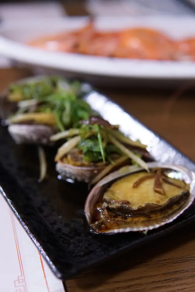 果皮蒸鮑魚,鮑魚肉質彈牙,果皮唔算好重味,重食到鮑魚的本身鮮味。不過食落唔算太甜,甜味稍為欠缺左少少。蒸貴妃蚌係我最愛的海鮮之一,因為佢個種鮮甜味真心係不得了。蒸既時間好似左左少少,食落唔算太熟,但係食落都可以接受,而蚌本身的甜味都加番分。呢盤花膠雞,我真心估唔到自己食下食下竟然食左大半隻