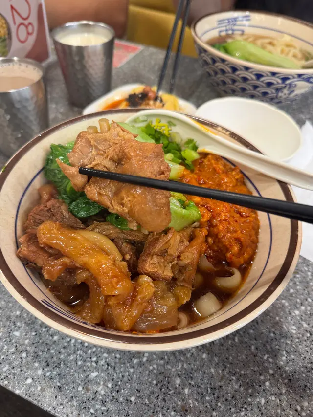 今日約左朋友係北角食飯,搵左台灣餐廳一齊食見網上都幾多人推介,餐廳環境好有台灣特色,裝修好有心思,食物種類都幾多下,完全滿足到對台灣美食既想念之情😍主食叫左蕃茄紅燒牛肉刀削麵刀削麵口感好煙靭,湯頭蕃茄味好鮮香,牛肉好出色,軟腍得嚟牛香味濃,有肉有筋,食落口感豐富香煎排骨便當🍱排骨好惹味,便堂仲有滷肉,肥瘦勻稱,勁好送飯小食,夜市鹽水雞,全部雞肉同配菜都入味,雞肉都juicy嫩滑仲叫左個台灣名物,台灣香腸蛋餅勁少見有呢個配搭,估唔到又幾夾😎當然唔小得台灣既手調飲品啦😍芋香珍珠奶茶🧋& 冬瓜茶整體食物質素都好地道高質,性價比都抵食!…Read More
