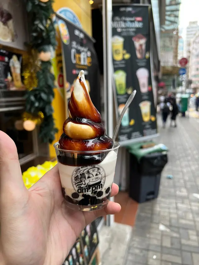 油麻地人氣甜品店每次喺油麻地站行過去家樂坊嗰頭都會經過一條巷仔然後嗰條巷仔食一間好奪目嘅甜品店AM PM每次行過都好多人排所以都冇去試過今日咁岩喺佢開舖嘅時候經過見冇咩人排就睇吓佢究竟有啲咩食原來佢哋係賣自家即製嘅疏乎厘有好多唔同嘅選擇例如tiramisucreme brûlée 朱古力等等可以見到店員喺玻璃窗後邊即刻整揀左佢地嘅signature dishcreme brûlée 焦糖面啱啱好係疏附里上面彈下彈下唔好食都好睇仲要好食甜而不膩!!!仲嗌左杯朱古力嘅milkshake奶味濃,朱古力味更濃上面仲鋪咗好多朱古力碎片好有層次最後試埋佢哋嘅黑糖珍珠奶茶雪糕冰凍嘅雪糕配上熱辣辣嘅珍珠加埋溶溶地嘅黑糖簡直係甜到漏正呀…Read More