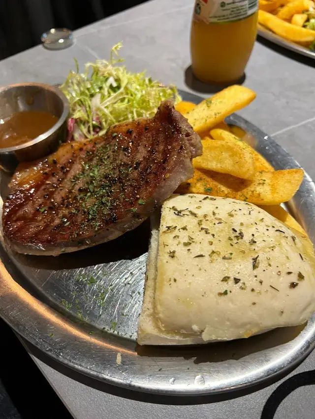 西營盤嘅bottle & steak地點都算方便喺站到行1分鐘就到steak 顧名思義當然係主打牛扒bottle 就係解唔同嘅酒佢呢度有好多唔同種類嘅手工啤或者啤酒揀鍾意飲酒嘅朋友會好鐘意今日試咗佢哋嘅lunch set$98已經有1塊牛扒Set仲會包埋兩個Peter Bread一份薯條少少沙律等絕對夠食而且仲可以自選飲品果汁梳打水或者罐裝咖啡唔使加錢如果想試吓佢哋啲特別手工啤都只係加$25都算幾抵講返塊牛扒呢個價錢其實幾高質有牛味表面仲有好香嘅香草味亦都有肉汁薯條上面亦都加咗唔同嘅味粉都算幾香口同埋係厚薯條好滿足Peter Bread 有煎過也幾香口唔乾更新嘅果汁都算幾好飲而且係進口貨幾有誠意overall 黎講 lunch set 覺得真係物超所值…Read More
