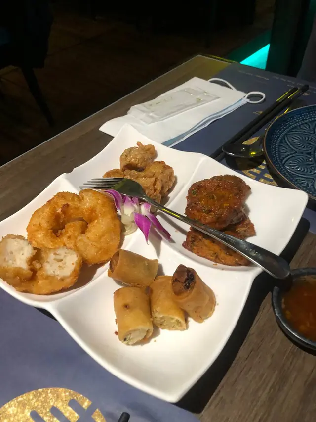 這家位於尖沙咀海防道的泰菜人流很多剛好當天下雨不然坐在露天的座位望住下面 人車熙來攘往 嘆著泰菜喝下beer人生樂事也炎燒大蝦即場點上火酒光是視覺效果已經滿分配上沙律醬及酸酸甜甜的醬十味開胃蝦肉爽口彈牙蔬菜粉絲煲粉絲索滿醬汁但仍然煙韌蛋牙蔬菜也炒得香口海港炒飯簡單的一道處理得唔錯炒飯粒粒分明海鮮份量多有魷魚 鮮蝦 及青口而且配上蕃茄令味道更有層次小食拼盤有蝦餅,魚餅,春卷等蝦餅 彈牙 爽口 有蝦味魚餅 味濃佐酒一流…Read More