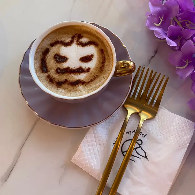 𝐏𝐮𝐫𝐩𝐥𝐞 𝐂𝐚𝐟𝐞 以紫色作主調(*゚∀゚*)前台搶眼打卡位置放置了透明半圓形既椅子,後面佈置很多紫色花花,整體給予高貴感覺,適合充滿少女心的女生來打卡(✪ω✪)今次👵🏻👵🏻都趁熱鬧黎光顧一番,相比門口打卡位,小女子更喜歡二次創作的名畫佈置(〃∀〃)畫作將名人改成飲用珍珠奶茶🧋,喜歡畫畫和珍奶的小女子表示非常有趣(శωశ)食評:7/10 💛💛💛💛推薦度:6.5/10 💛💛💛價錢:6.5/10 💛💛💛🔺𝐏𝐢𝐧𝐤 𝐑𝐨𝐬𝐞 HKD$58 💛💛💛💛一見「粉紅玫瑰花」,我第一感覺眼前會出現粉紅色玫瑰造型的甜點,但最終出現的是與Cafe色調一樣的紫色玫瑰(´⊙ω⊙`)比想像中更加漂亮(▰˘◡˘▰)甜點🍮份量小小,但對於甜點整體裝飾、放置,小女子表示滿意(๑•̀ω•́)ノ玫瑰味道重但口感偏向清新,Mousse Cake算Creamy,點上作為裝飾朱古力醬、Cream,味道不會過漏,可以再Encore (っ●ω●)っ🔺 𝐌𝐨𝐜𝐡𝐚 HKD$42 💛💛💛💛一上碟,小女子已比用可可粉砌成的萬聖節🎃裝飾吸引💛咖啡師GJ ヾ(´ε`ヾ)餐廳只有全脂奶,可惜沒有脫脂奶提供(◞‸◟)不過久違地飲用採用全脂奶沖泡的咖啡,口感非常Creamy,而且朱古力、咖啡味道濃厚,咖啡不會過酸,小女子表示滿足(〃∀〃)(當然肚肚也很滿足(╥﹏╥))整體而言,小女子認為要改善的地方是雖然餐廳是小店,座位不算多,但餐廳人手不足,前台只有一位侍應同時負責拍照、派位、點菜和上菜,另一位則負責水Bar,小女子認為需要增加人手,以應付餐廳運作(✘﹏✘ა)另外,佈置方面,門口應用紫色毛毯來取代紅色毛毯,令主題一致、而且配合前台打卡位置,不會過於突兀(✘﹏✘ა)p.s. 朋友點了蟹柳明太子意粉(HKD$88),味道好味,推薦點用…Read More