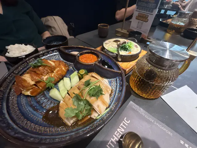 在尖沙咀圓方尋覓美食,這家主打海南雞飯的專門店絕對值得一試!尤其是他們極受歡迎的 「海南雞拼燒雞」,絕對是店家的王牌之選,完美解決選擇困難症。那份 「海南雞拼燒雞」 拼盤一端上桌,賣相已相當誘人。重點是,啖啖雞肉都嫩滑無比,真正做到近乎無骨! 雞肉本身處理得宜,肉質緊緻卻不失水分,入口細膩。海南雞部分,雞皮清爽,雞肉鮮味突出;燒雞則帶有恰到好處的焦香,皮脆肉嫩。最令人驚喜的是,即使不蘸任何醬油或薑蓉,單吃雞肉已覺滋味十足,鮮香在口中縈繞,足見雞隻品質與師傅烹調手藝的講究。份量方面,絕對是誠意滿滿。 我們兩個人分享一份拼盤,再配上油香十足的雞油飯,連白飯都互相分享著吃,最後是捧著肚子滿足離開。 對於胃口不算極大的食客來說,這個份量二人分享非常足夠。店內服務亦屬貼心周到。侍應非常主動有禮,留意到我們的茶稍涼,便自動前來詢問並換上熱騰騰的新茶,這份細心讓人感覺良好,大大加分。甜品環節同樣有驚喜!試了 「豆腐花美祿恐龍」,創意十足。滑溜的豆腐花配上經典的美祿粉(「恐龍」意指大量灑上的美祿粉),甜度控制得宜,不會過膩,美祿的麥芽香氣與豆香意外地合拍,是個有特色又美味的新穎組合。擺盤亦見心思,精緻討好。總括而言,這家位於圓方的海南雞專門店,由招牌的雙拼雞肉、到貼心的服務、再到特色甜品,都展現出高水準。尤其是那無骨嫩滑的雞肉和慷慨的份量,絕對是吸引人回頭的關鍵。想吃一頓高質又滿足的海南雞飯,這裡非常值得推薦!…Read More
