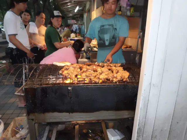 其實我去親澳門都會去黑沙海灘,但搵唔到' 肥佬馳名燒烤',原來在公眾WC旁邊,又聞到炭燒香味,所以咪試下當時店員(唔見肥BOSS)正烤食物,人又多,搞到做唔切,就算我排到條隊,在負責收銀的店員面前有禮地落order都各自各做自己嘢,要提醒她數次才知道收$
