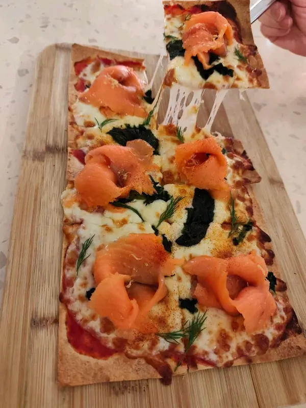 菠菜煙三文魚薄餅