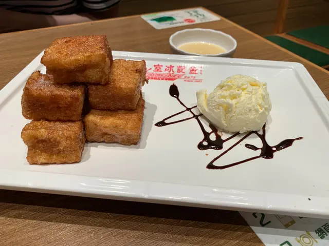 今日同朋友趁著一田購物優惠日還未結束,去咗大埔開心shopping,捧著幾袋戰利品,朋友就話食埋晚飯至返屋企,於是我哋就去咗附近一間茶餐廳——「金記冰室」坐低慢慢食。冰室門口擺放了餐牌及易拉架來介紹店內食物,整齊美觀,客人可一目瞭然。其中每天不同款式的防疫老火靚湯非常吸引,確實適合工作忙碌而無暇煲湯的上班一族。踏進店內,店員即上前招呼及量體溫,而客人需展示手腕內側,據店員說可順道檢查客人有否戴電子手環,看來頗細心,有別於一般食肆的做法。亦因應限聚令關係,店內座位均以膠板或透明膠來分隔,確保客人吃得安心又舒適。最後朋友點了香港情懷精選之「煎蛋豬扒飯」,而我因為下午茶吃多了,故此就選吃「吉列豬扒配沙律」,另外再加兩杯飲品—「芒果凍頂烏龍冷泡茶」和「凍檸檬茶」。「吉列豬扒配沙律」 $50吉列豬扒大大塊,色澤金黃,酥脆香口惹味,外脆內軟,肉質不會又乾又硬。沙律以薯仔及雜果拌成,比例剛好,而沙律味道酸酸甜甜,很開胃,還伴有番茄和生菜,賣相不錯,如果薯仔能再烚淋一點就更佳。「煎蛋豬扒飯配豉油汁」 $48香港情懷精選系列均設有多款醬汁以供選擇,除了豉油汁外,還可選配鮮茄汁、黑椒汁或燒汁。香煎豬扒厚薄適中,帶少許肥膏,肉質軟腍,非常惹味,加上兩隻脆邊雞蛋和鹹中帶點甜的豉油來拌飯,朋友食到唔停口。「芒果凍頂烏龍冷泡茶」 $14 (跟餐配)朋友喜歡新嘗試,於是點了新出的「芒果凍頂烏龍冷泡茶」來試,以高身杯盛載,內有一個茶包,賣相不錯,朋友話綠茶味幾清甜,但芒果味稍淡,若能加幾粒芒果肉的話,不但增加口感,味道亦會更佳。「凍檸檬茶」 $12 (跟餐配)少甜少冰的凍檸檬茶就比較合我口味,茶味適中,不會太濃和帶苦味,甜度也剛好,飯後喝一杯,確實不錯。最後,朋友意猶未盡,佢話今日shopping消耗大,想食個甜品再補充吓。「金粒西多配雪糕」 $38將西多士切成小小的立方體,一口一件,粒粒炸得金黃色,沾滿蛋香,外脆內軟,蘸煉奶或配以雪糕一起吃,一冷一熱,口感豐富,為今餐劃上圓滿的句號,很滿足的一餐。總括來講,餐廳食物有質素,價錢合理,座位空間尚算寬敞,難怪朋友已成為熟客。而且最近店內新增了自助電子落單,客人可利用枱上入數紙的QR code登入網站下單,衛生又環保。介面清晰,操作簡易,而且內置多款不同選擇,如少甜、少冰、少油、少鹽、多豉油、熟蛋、走蔥⋯⋯等,方便客人按個人口味喜好剔選,個人認為非常貼心,值得一讚。…查看更多