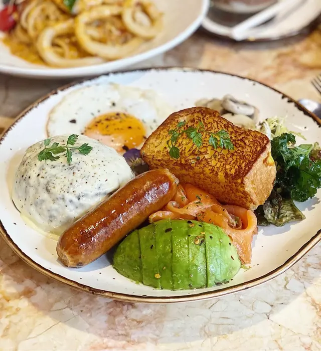 💭前幾日去咗megabox同朋友食飯,呢間餐廳裝修幾靚,而且餐牌食物都幾特別,每一張枱都擺咗超可愛嘅熊啤啤,好適合我地嚟打卡🎉📷🥢泰式梳乎厘芒果糯米飯超鐘意佢呢個配搭,超有驚喜😍擺盤勁靚!梳乎厘蛋味濃郁🍮,空氣感十足,微微濕潤嘅口感,入口即化,芒果香甜,糯米飯加咗啲脆脆,勁有口感,值得一試,超正呀!🥢椰香冬蔭功海鮮意粉意粉好掛汁,冬蔭公味濃帶小小椰香味,微辣嘅醬汁酸酸甜甜夠晒惹味!有墨魚青口同蝦做配搭,墨魚好彈牙🦑🥢漢堡扒全日早餐全日早餐好豐富,有漢堡扒、煙三文魚、牛油果、蘑菇、腸仔、煎蛋、沙律菜同法式多士。份量十足!係飽肚之選呀😆漢堡扒好淋肉汁多,上面舖咗熱溶芝士味道幾夾!🥢糯米芒芒椰奶沙冰芒果、椰奶同糯米碎粒混合一齊,口感順滑,清甜而唔膩,夏天消暑飲一流!🍹🥢黃金比例泰茶茶味香濃,再攪勻煉乳同牛奶,甜度適中,每一啖都好fresh!☕️☕️…Read More