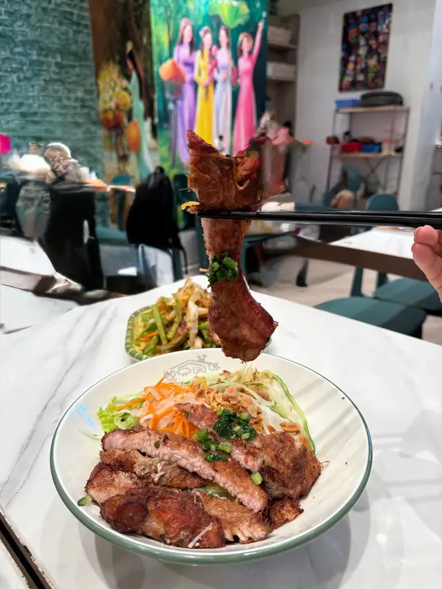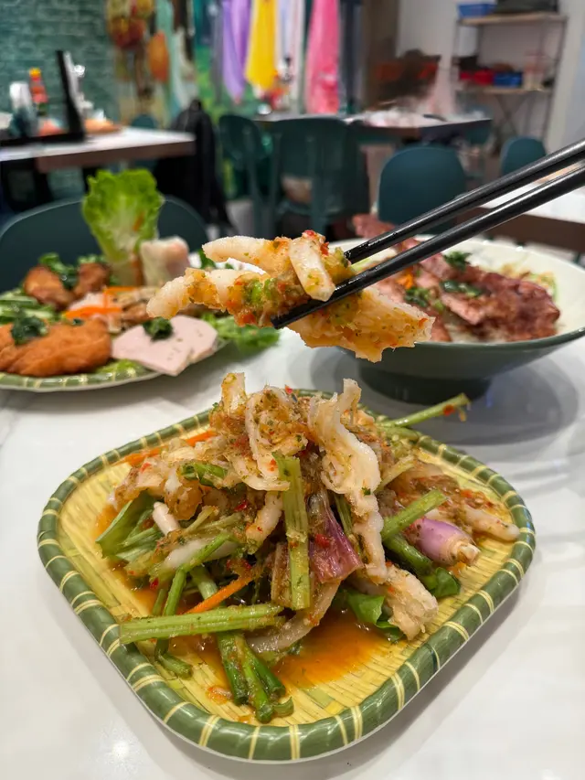 酸辣無骨鳳爪$78呢一個相當之開胃☺️酸酸甜甜😋最鍾意佢冇晒骨😊食落去勁方便😆口感極度爽口越式香茅豬扒撈檬$65個豬扒勁大份🙂表面加咗少少香料🤭所以好香😋炸得好香脆😆配搭巨量嘅檬粉🤣可以加巨量嘅醬汁😚所以同埋巨量嘅生菜😄份量好大越式滋味小食拼盤$148米紙卷、春卷、魚餅、雞翼、青瓜啲個拼盤幾好🙂一次過試晒佢嘅唔同特色小食😂最鍾意食佢個魚餅☺️煎得好香脆😀可以配搭佢個酸辣醬😚另外春卷都炸得好香😉入邊加咗少少雞肉🙂同埋木耳😋所以多重口感😃整體都好有越南特色ps: 餐廳新開😂成個裝修都好越南特色😀侍應都係越南人😆好似去咗越南旅行咁…Read More