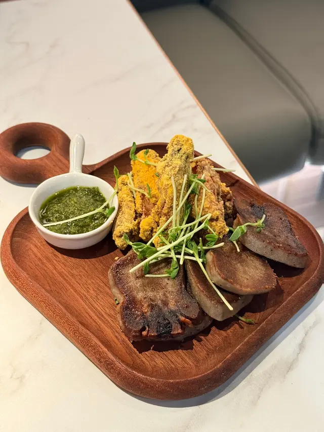 AIRSIDE 6樓「浪谷」主打滑浪主題既日式料理🏄可以一邊食飯一邊睇衝浪📸氛圍感滿分黃金蓮藕片$48超薄蓮藕炸到通透金黃🔥灑上淡淡椒鹽少少辣🥂非常脆口啱晒佐酒😍 會食上癮👌油甘魚柚子脆米$88油甘魚刺身油脂甜潤又新鮮🐟柚子汁帶清酸與細微苦香🍊提鮮但唔搶味👍🏻底層脆米增加口感😝層次豐富明太子忌廉烏冬$148冷烏冬掛滿濃郁creamy既忌廉醬🍜明太子同紫菜份量足非常惹味🥢邪惡指數爆燈👑和牛柳粒炒飯$188和牛粒大份而且外層微焦內裡嫩滑多汁🔥炒飯乾身飯粒分明夠鑊氣🍳蛋香蔥香味好出😋梳乎厘芝士蛋糕$62梳乎厘蛋糕輕盈蓬鬆☁️中段帶柔和香滑奶脂感🍰芝士味濃郁得黎唔膩💖甜度拿捏剛好栗子蛋糕$62蛋糕比較甜身🌰但栗蓉香甜綿滑😆蛋糕底鬆軟✨幸福感直線上升✨…Read More