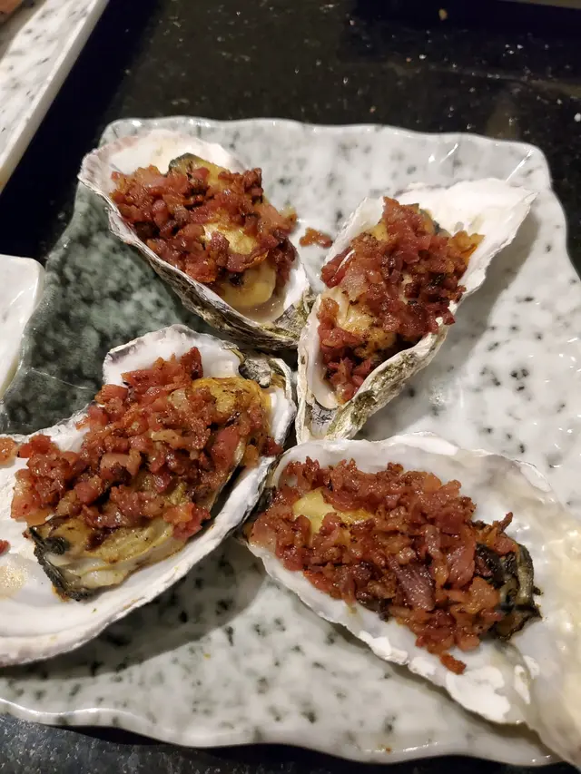 今晚朋友帶隊一行7人入黎鯉魚門食海鮮,大家都食到膽固醇超哂標,但都係值得嘅。我地首先係妹記度點咗要乜海鮮,再由海鮮舖幫我地拎去餐廳,所以我地都唔使一抽二褦咁拎去餐廳,實在方便。去到餐廳先發現唔係大排檔黎,而係裝修得古色古香咁,比我想像嘅好乾淨同舒適,餐廳嘅環境好擴闊。我地點咗蟶子王,蝦,龍蝦,奄仔蟹,鮑魚,花螺,咕嚕肉同芥蘭。今次嘅奄仔蟹隻隻都爆膏,大家都覺得好味過d 大閘蟹。最驚喜嘅係芝士龍蝦配煎米粉底,係十分十分之好味,係出面d 餐廳都好少呢個做法,所以我地個個都讚。最後餐廳送嘅木瓜魚湯,脆麻花,鮮木瓜同南瓜露都好出色,全部都清哂。…查看更多