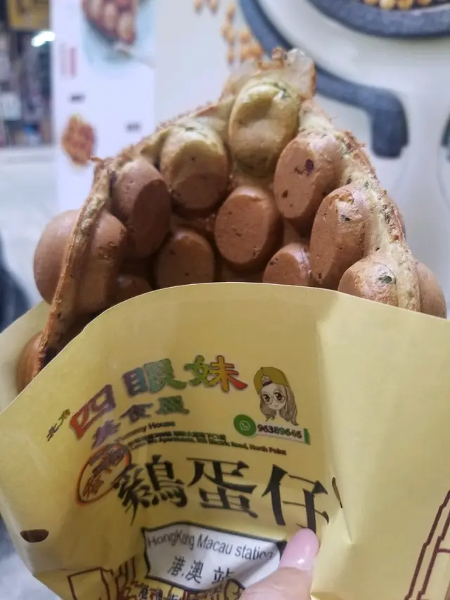 今天去炮台山附近找朋友,路過見到有雞蛋仔買,於是就比食物深深吸引,停步下來。食店的食物種類有很多,有甜食,也有鹹食。甜食有雞蛋仔、格仔餅等等;鹹食有腸粉、魚蛋、燒賣等等。最後我們還是覺得食甜食比較吸引。抹茶味雞蛋仔加紅豆餡:雞蛋仔充滿蛋香,抹茶味濃厚,咀嚼時非常Q彈,內裏的紅豆蓉也相當美味,紅豆配綠茶永遠都是完美配搭。總的來說,十分美味,難怪店舖以雞蛋仔命名!金沙榛子醬原味格仔餅餡料十足,榛子味足,真的好像在吃金莎一樣,配搭格仔餅進食時味道不會過甜。想不到在橫街裏也有這些出色的小店,真的是很有驚喜呢!…Read More