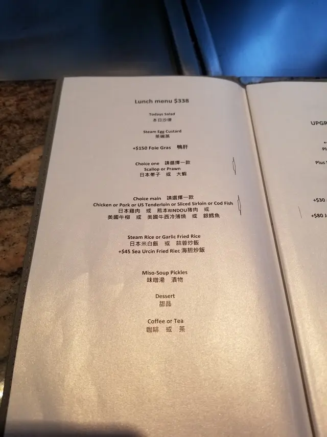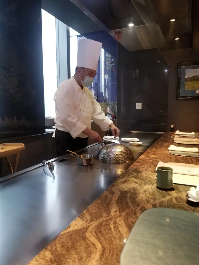 早排同朋友去到銅鑼灣,心血來潮想食餐高質日本餐,上網找到這間上樓日本餐廳,決定一試。上到餐廳,環境舒服,侍應安排我們坐在鐵板燒枱前。餐牌有幾款不同lunch set, 我們一人點了一個。不久,鐵板燒師傅立即出現在眼前,即席取出食材煮給我們,感覺非常高級。同時,侍應遞上擺盤精緻沙律一碟,蔬菜新鮮可口。茶碗蒸蒸蛋質感超滑,味道適中,上枱時熱騰騰的。日本大蝦鐵板燒師傅煎時蝦味極香,入口後蝦身彈牙,蝦頭超脆,好似食薯片一樣,哈哈哈!朋友叫的帶子都相當大隻、鮮甜。美國牛柳牛柳夠啉身,牛味亦濃,加上非常juicy ,簡直無得輸。本以為最吸引的主菜已出現,誰知好戲在後頭,看着師傅炒飯,他將部分炒飯壓平再煎,煎成薄脆,最後放上炒飯上,未食已非常吸晴。第一時間食薄脆,意想不到的好味,炒飯亦相當夠味。最後還有麵豉湯、漬物、咖啡及甜品,甜品非常特別,食落似拖肥味的冰,加上咖啡,非常配合。整餐飯充滿驚喜,每一味都極之高質,完全滿足到高質享受的要求。…Read More
