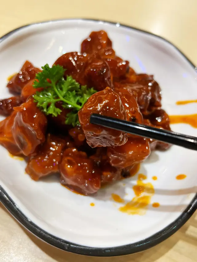 久違的味道❗️很久沒去尖沙咀的霸王山莊,質素還是如一的好❕霸王山莊主打中國名菜,由京、川、滬、到杭等地的菜式都有,讓人可以一次品嚐到各種地方的美食。除了豐富的麵食選擇外,他們還有一個特別推薦的「點心霸王」菜單,絕對是不能錯過的!我點了一些招牌菜,首先是皇家蘿蔔絲酥餅,真是太好吃了!酥脆的外皮包裹著香甜的蘿蔔絲,一口咬下去,口感十分豐富。接著,我嚐了冷盤的梅香花彫醉乳鴿和糖醋小排骨。乳鴿肉鮮嫩多汁,梅香花彫的口感脆爽,真是絕配!糖醋小排骨則是酸甜可口,肉質鮮嫩,讓我回味無窮。主菜方面,我選了香蔥鮑魚燜紅燒肉。這道菜的鮑魚和紅燒肉口感都非常好,肉質鮮嫩多汁,搭配上香蔥的香氣,一口接一口沒停過🤤。最後,我點了乾貝帶子蛋白炒飯,味道濃郁,乾貝和帶子的鮮味與蛋白的滑嫩完美結合,每一口都讓我愛不釋手。霸王山莊的菜式不僅味道出色,而且份量十足。店員還很親切🥰,招呼周到。整體而言,是日晚餐很高質!…查看更多