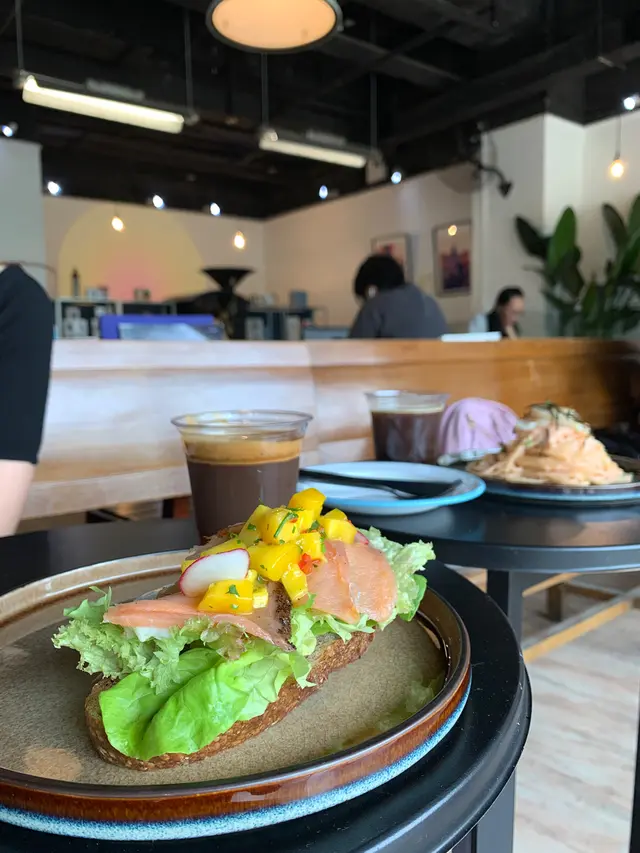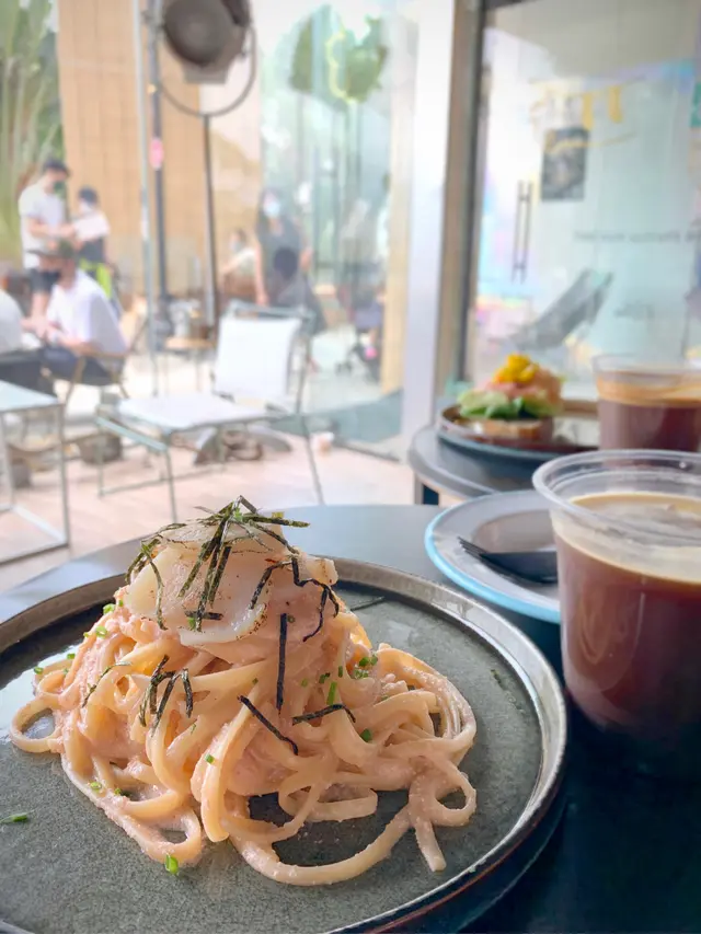 明太子意粉 Mentaiko Pasta $128芒果乳酪煙三文魚酸種麵包 salmon mango w/yogurt sourdough $88Black $40Espresso Tonic $48長假期梗係要出下離島hea吓,熱門地方實在太多人了所以就去咗馬灣行下。本身想食一間日式cafe但係booking已經full左,咁就不如試吓呢間淨係比walkin,環境又好似幾好嘅cafe。明太子意粉幾好食!明太子醬甜甜地咁樣,亦都會有少少微辣,creamy得來唔會好膩,醬汁亦都夠多,每一條意粉都會掛到明太子醬❤️碟意粉上有五六片帶子,煎得啱啱好亦都唔會過熟,帶子都幾鮮甜。意粉煮得啱啱好,整體來講係唔錯的🥰個sourdough係特別,味道上我就覺得不過不失啦。芒果酸酸甜甜,配上三文魚嘅鹹鹹地咁樣,再加啲香草,我都自己覺得有啲食唔慣,個人口味問題啦😂 同埋個sourdough邊如果可以香脆少少就好,食落去有啲硬。咖啡方面就係偏nutty(應該),唔係酸嘅咖啡豆啱我口味啲,我就覺得幾好飲,聞落去都幾香,始終我唔係咖啡expert,唔知點樣評價好😂喺呢度食嘢都幾有feel,望住青馬大橋同埋沙灘食嘢,唔係太熱可以坐outdoor,仲有呢間cafe係pet friendly,見到好多人帶着寵物🐶…查看更多