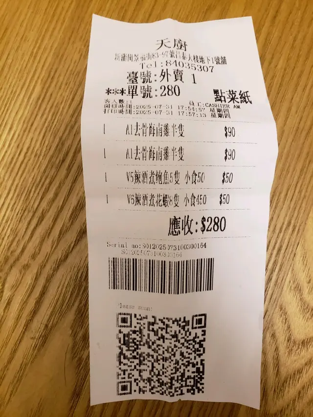 今晚放工,經過新蒲崗 譽・港灣附近,見一間名叫「天廚海南雞」的餐廳,好多人等外賣。趁墟我又叫埋一份。我叫左兩個半份Ge去骨海南雞,佢果然無買錯;有圖有真相。肉質鮮嫩,配上三種唔同嘅醬料;簡直無得輸!好鬼正!另外再叫左辣酒煮鮑魚,五隻夠曬鮮味,唔韌有咬口;辣味剛好。老媽子同老豆都食得過癮。老豆鍾意食𧎚,叫左一份有八隻Ge辣酒煮花蝦,蝦肉彈牙,配上香辣的醬汁,成家人都讚不絕口!…Read More